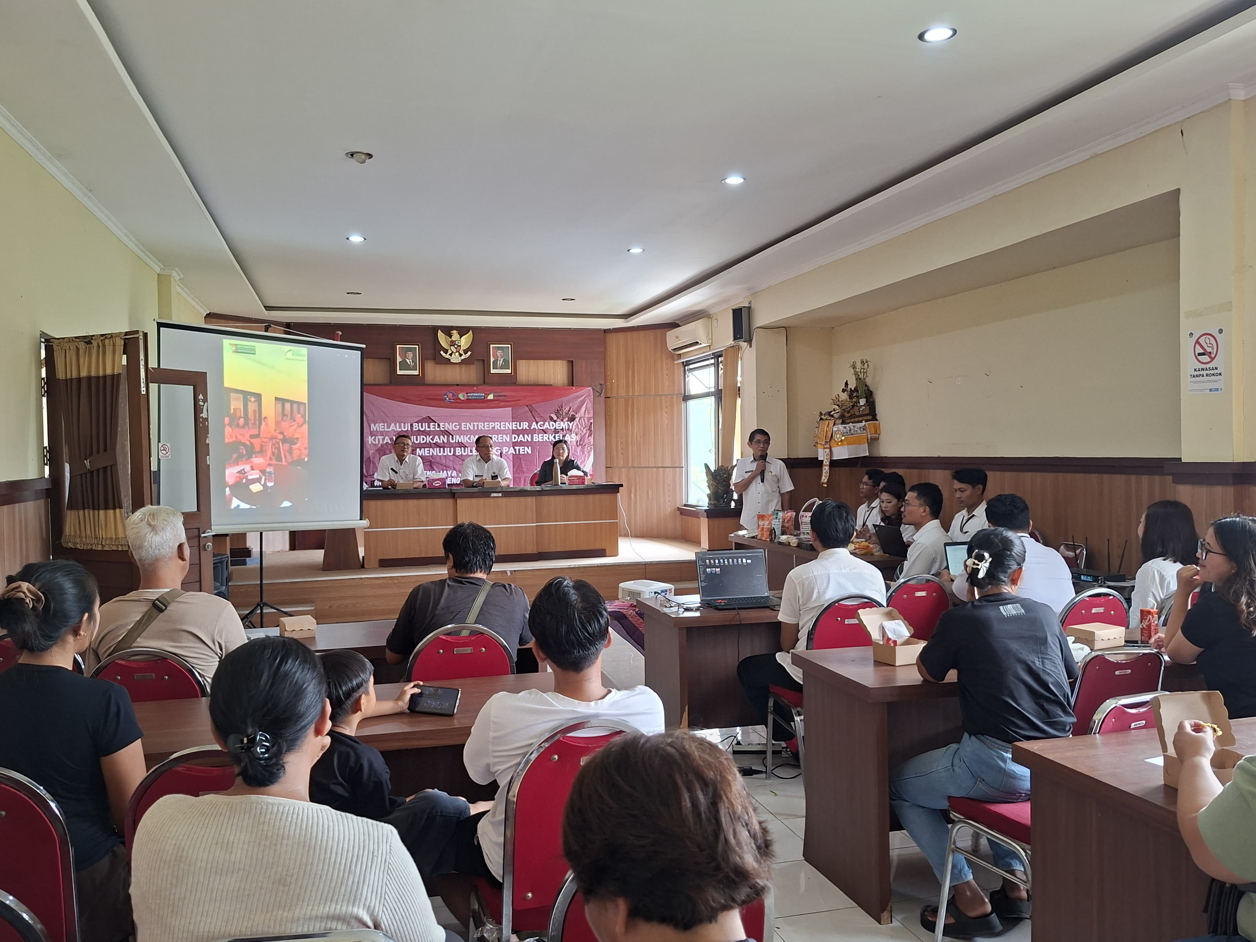 Plt camat Komang Budiarsana mendampingi Kadis Dagprinkop UKM Dewa Made Sudiarta pada kegiatan Lounching UMKM Mobile Clinic di aula. Kegiatan diikuti oleh UMKM se Kecamatan Sukasada yang berkomitmen naik kelas menjadi pengusaha yang berdaya saing di pasar utama bahkan menjadi eksportir.